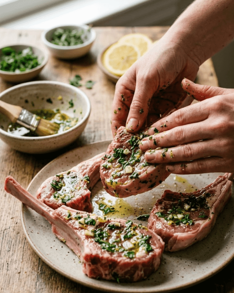 Go easy on the heat when cooking: you want a hard sear without torching the outside. A hot grill or pan gets you a lovely crust, but if the heat’s too high, the marinade will burn before the lamb cooks through. And that reserved marinade at the end? Pouring it over the cooked chops gives you an extra layer of zingy, herbaceous flavor, almost like a quick finishing sauce.