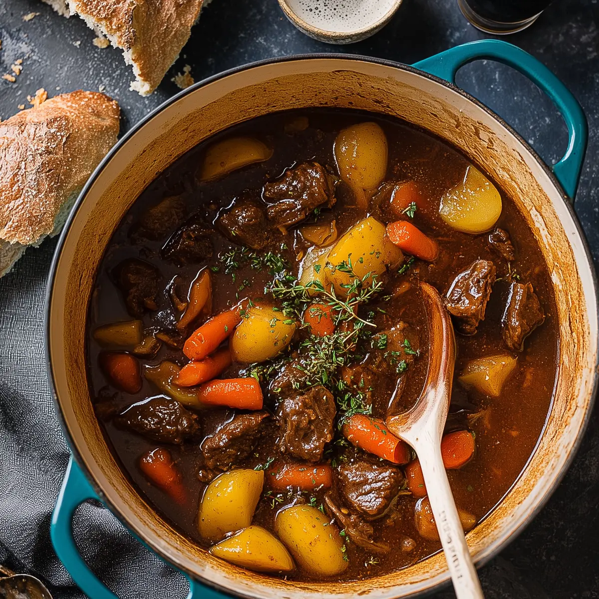 - Thyme sprigs – earthy and fragrant, they infuse the whole stew with herbal goodness, then discreetly vanish at the end.