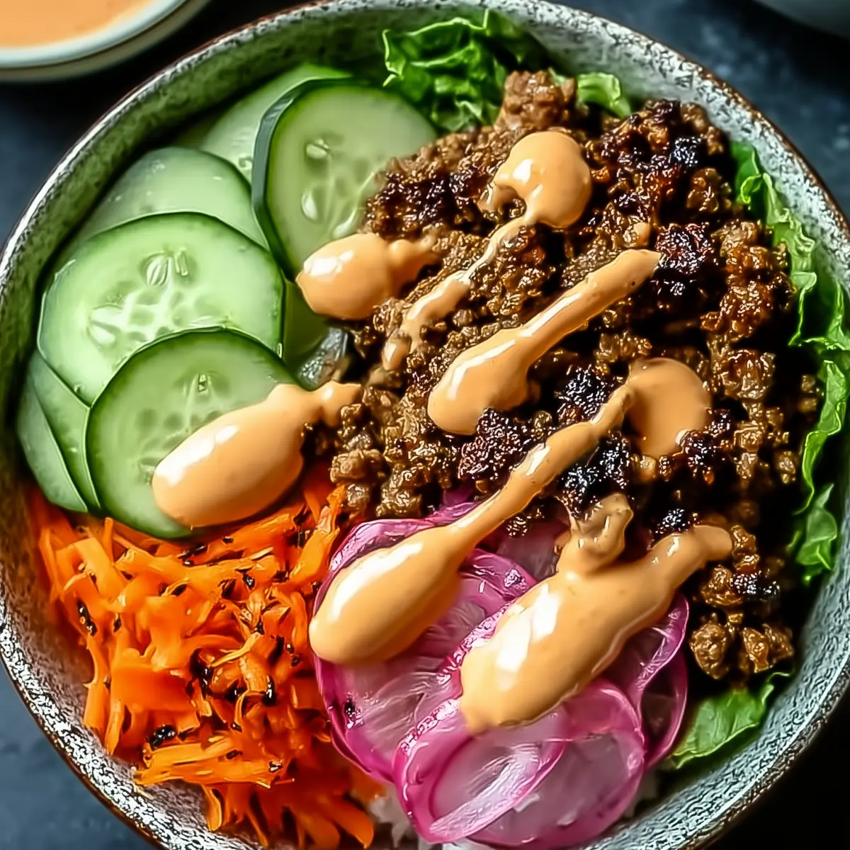 The seasoned beef and sauce will both keep well for up to 3 days in the fridge. Store the veggies separately for the best texture, and always assemble bowls fresh to avoid soggy greens.