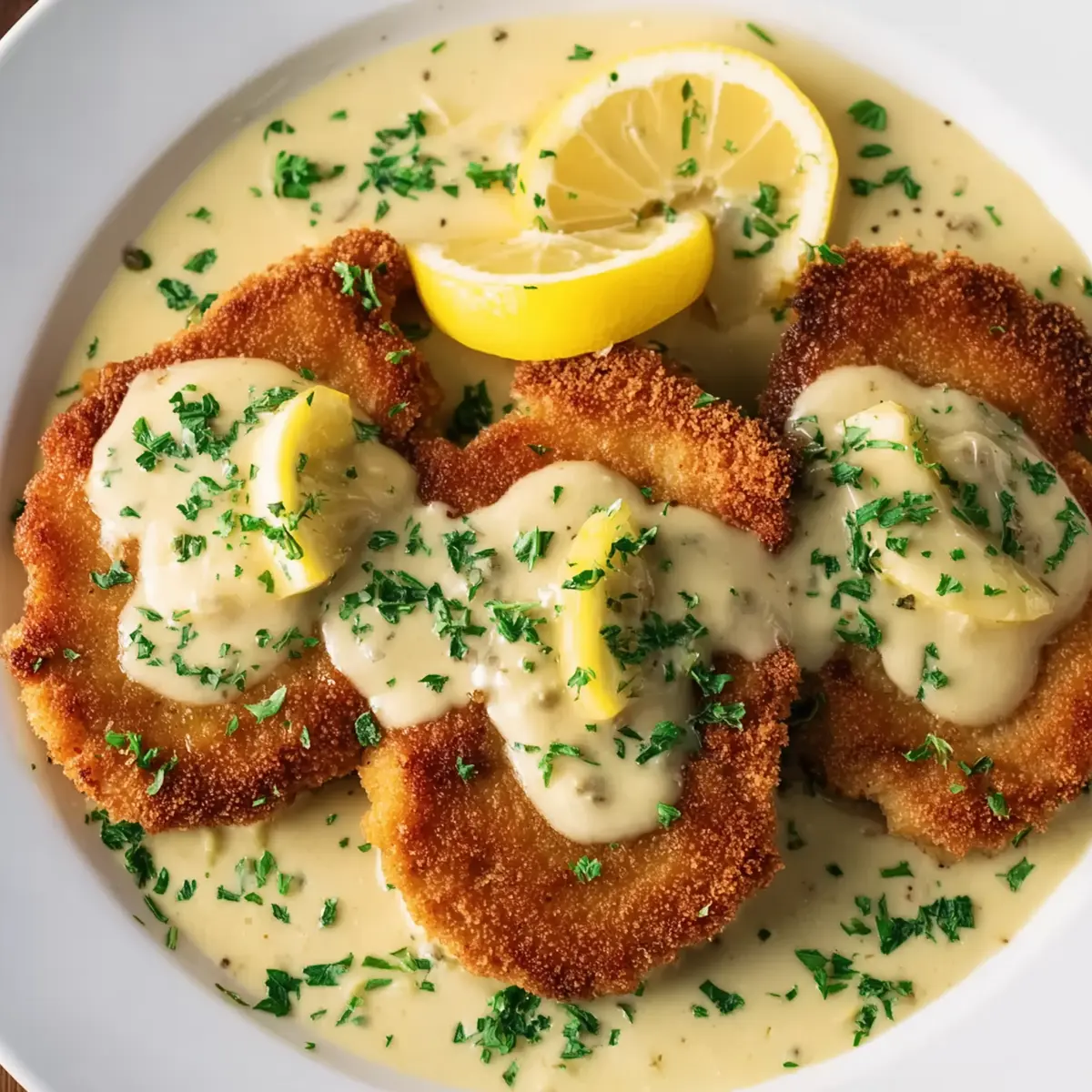 Crispy, golden veal cutlets coated in a velvety, lemony cream sauce—rich, tangy, and ready in 30 minutes. A restaurant-quality dish made effortlessly at home!
